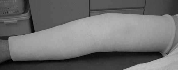 図2 保存療法。大腿部から足までの長いギプスを巻く。